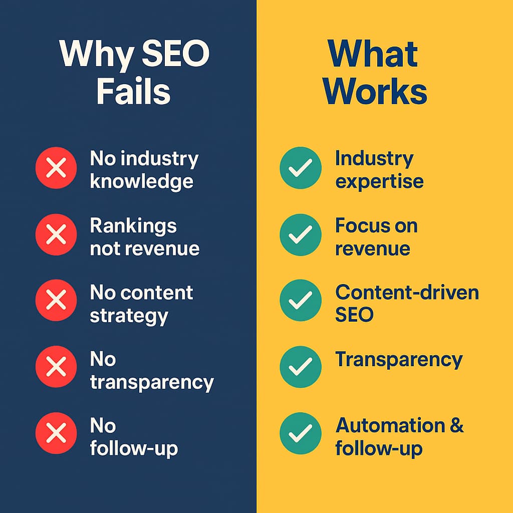 That’s why most of their work sits on your site, looks “SEO’d,” but never attracts serious leads.
